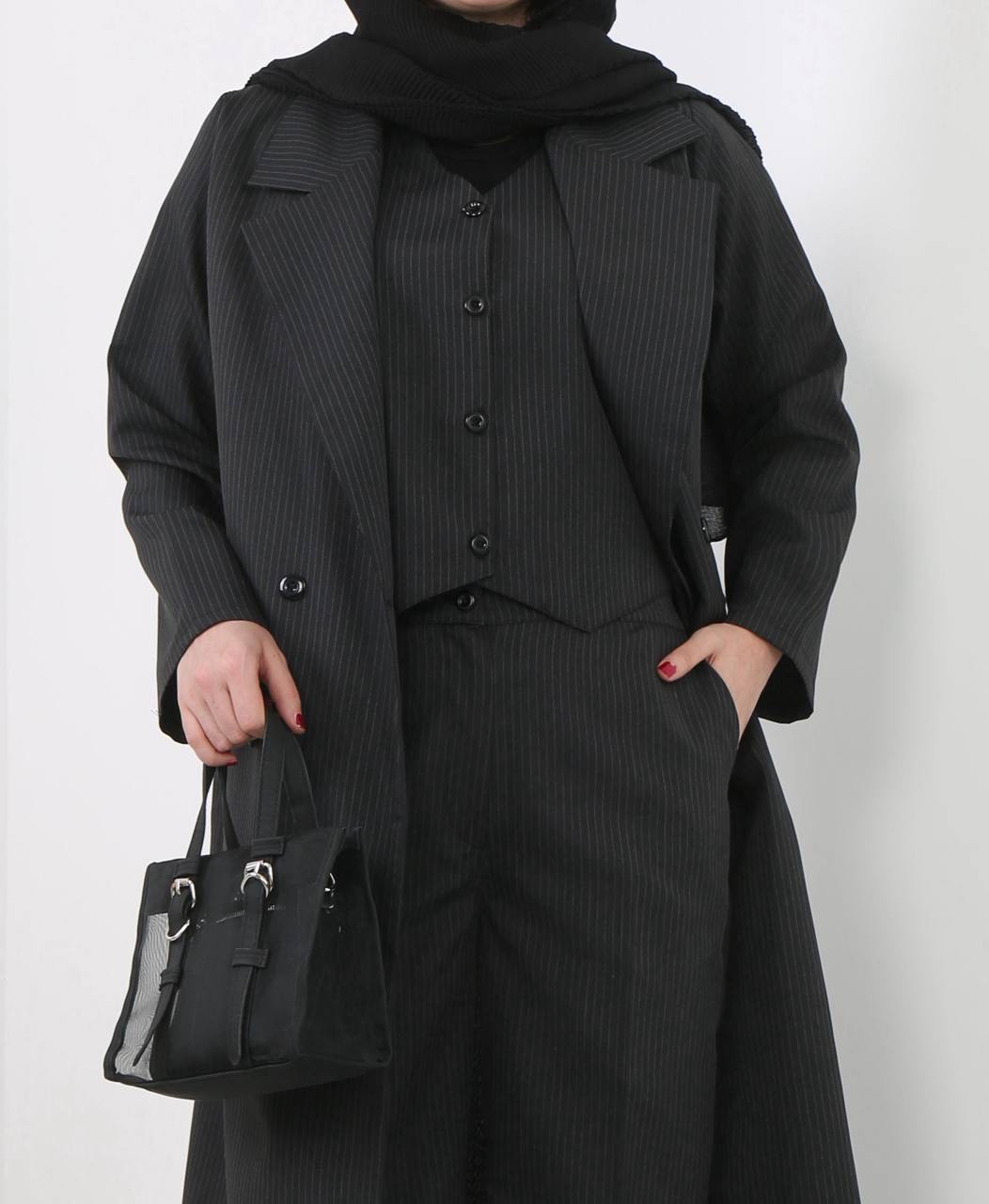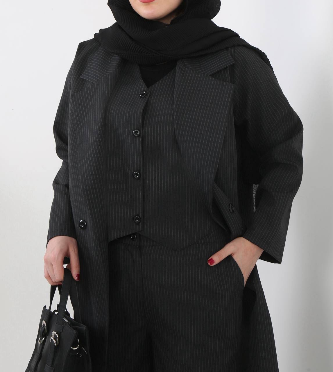 سه تیکه شامل مانتو و ژیله و شلوار