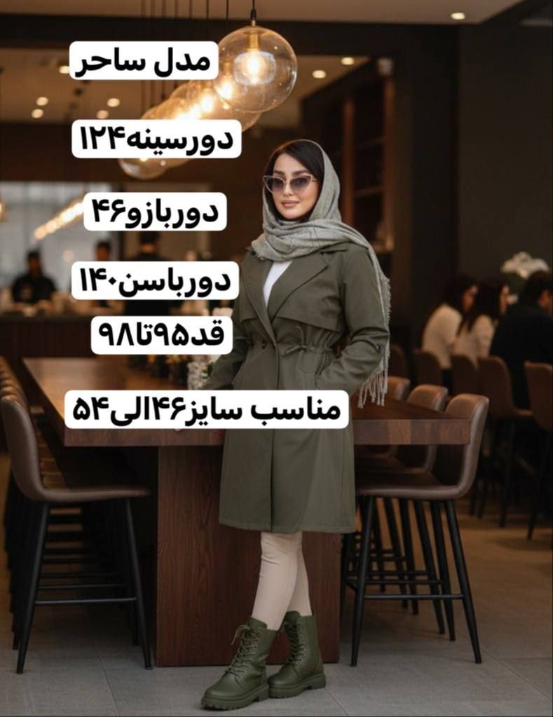 دور سینه ۱۲۴ – دور بازو‌۴۶ – دور باسن ۱۴۰