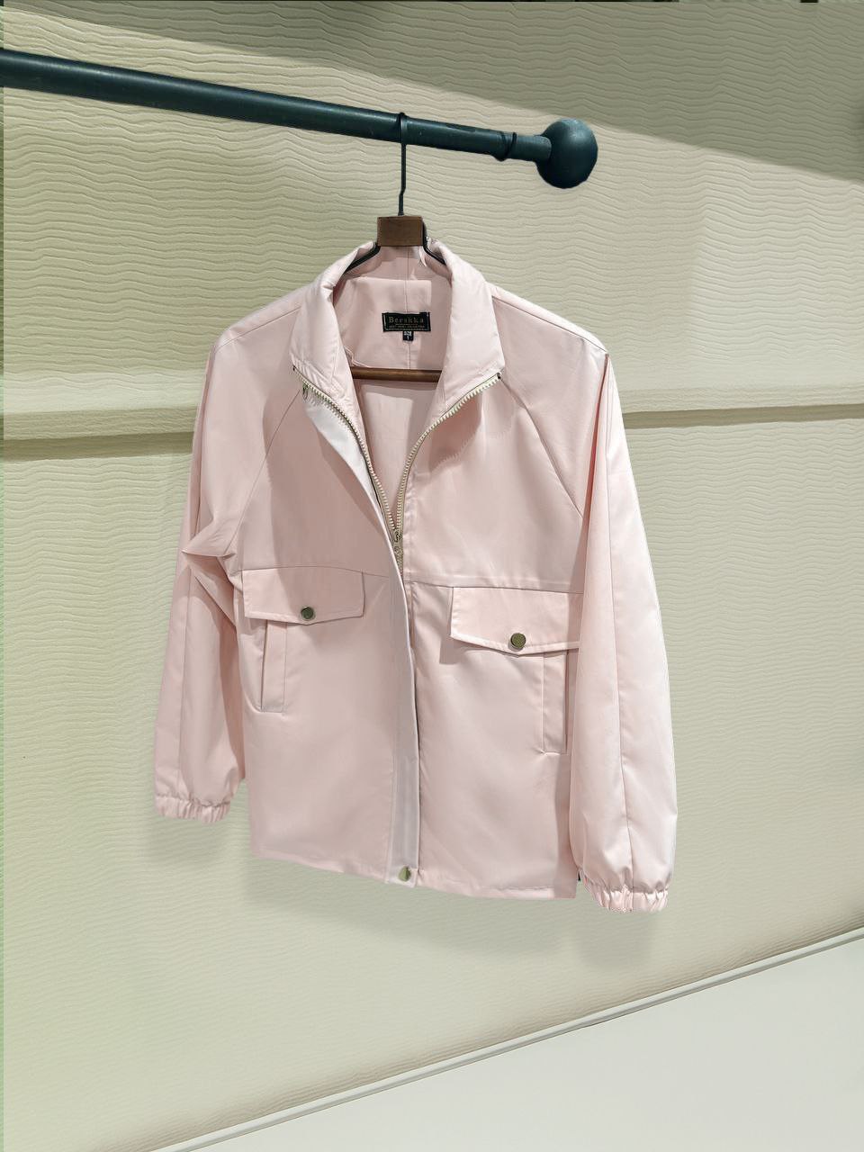 بامبر جکت زنانه استردار رنگ شکلاتی هوددار با نقاب پشت فیت آزاد پارچه کتان ضد آب نمای پشت