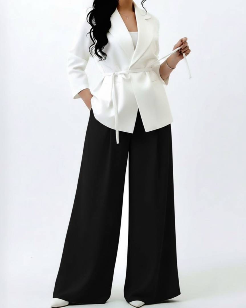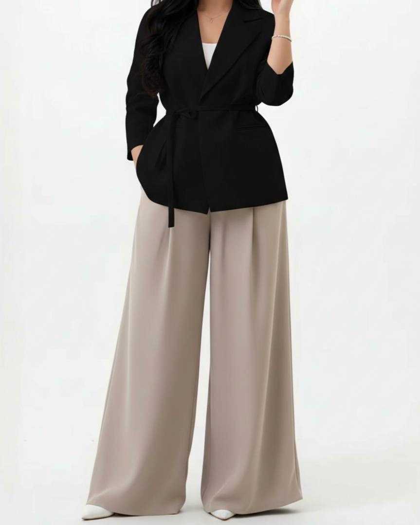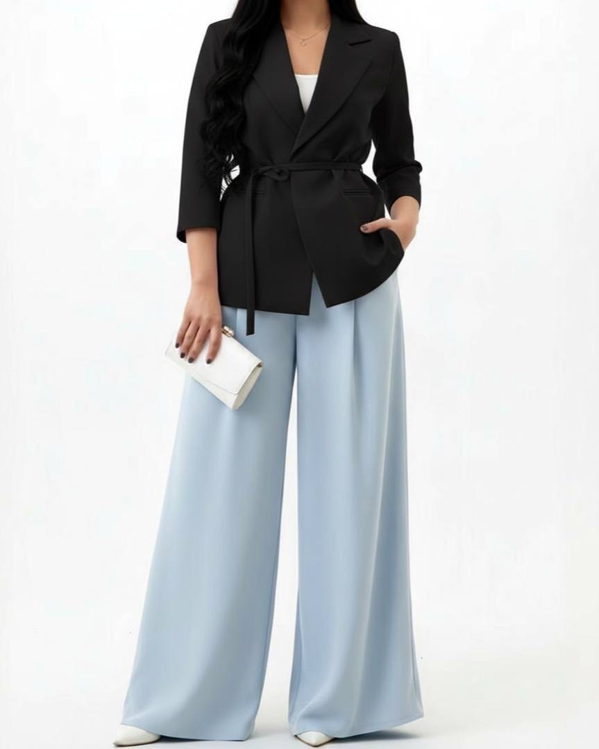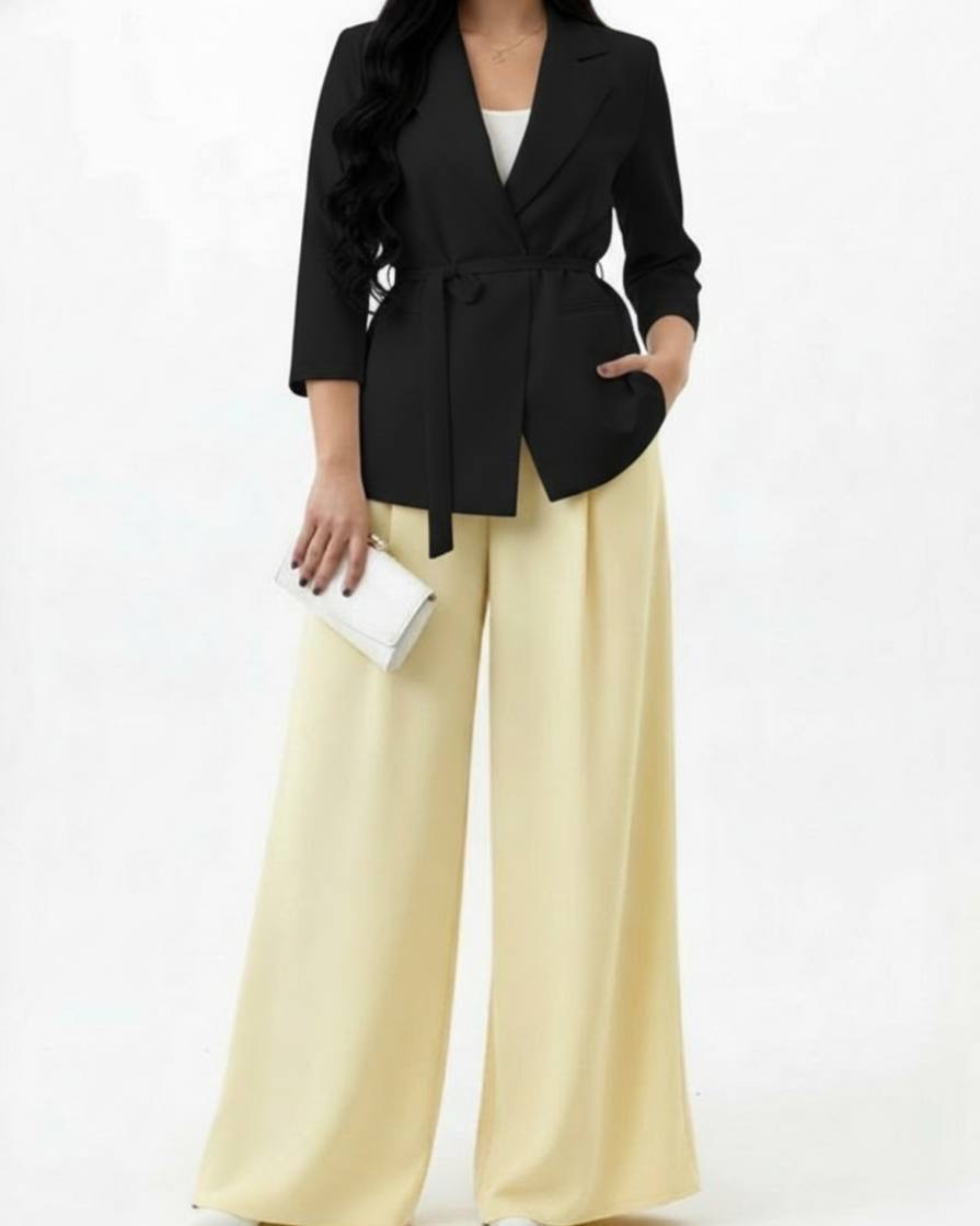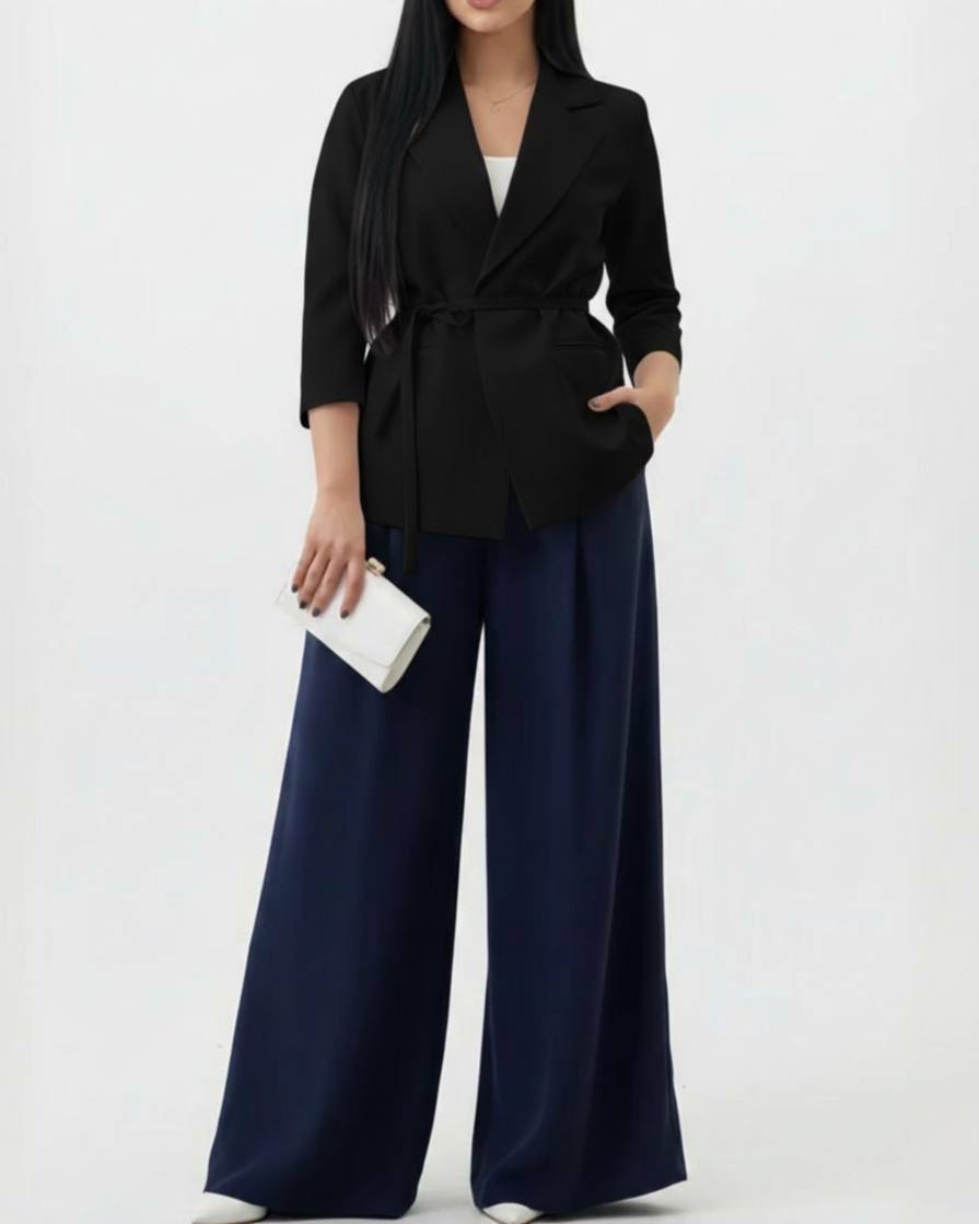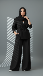 ست لمه مازراتی زنانه مشکی با طراحی رسمی و فرم خوش‌دوخت مناسب استایل اداری
