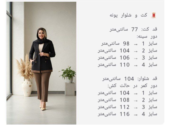 سایز چهار : 44 – 46, سایز دو : 40 – 42, سایز سه : 42 – 44, سایز یک : 36 – 38 |