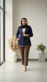 کت سرمهای ترکیب با شلوار قهوهای