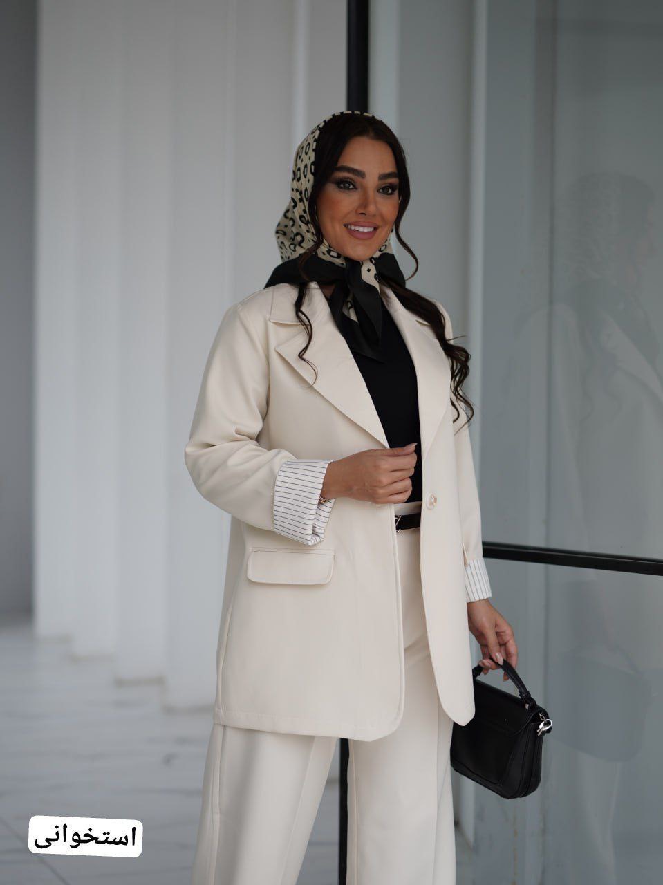 سایز 1 : دور سینه ۱۰۲دور کمر کت ۹۴دور باسن کت ۱۰۶ دور کمر شلوار ۹۰ دور باسن شلوار ۱۰۴ دور ران ۷۲ دمپا شلوار ۶۰