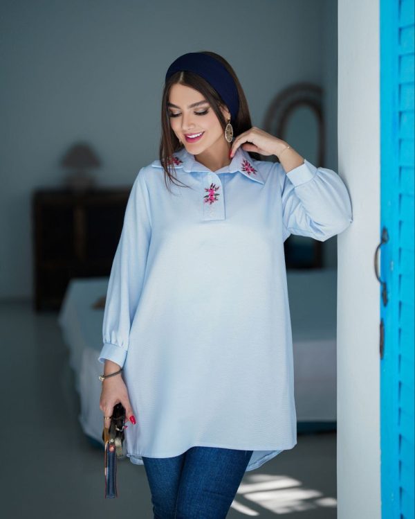 یک شومیز جلوبسته راحت و خنک با گلدوزی زیبا