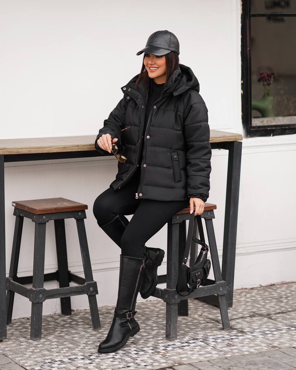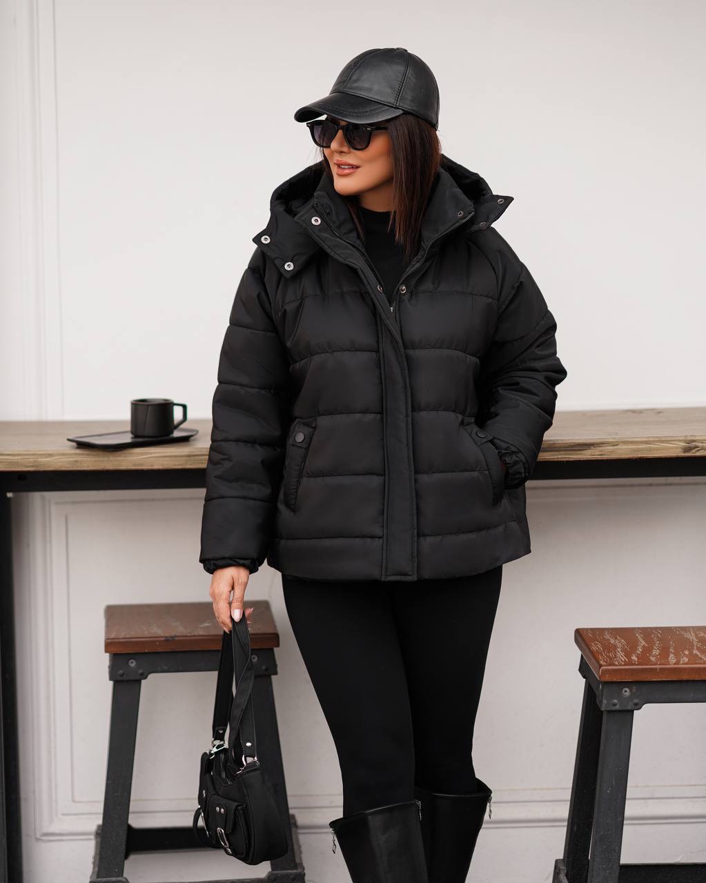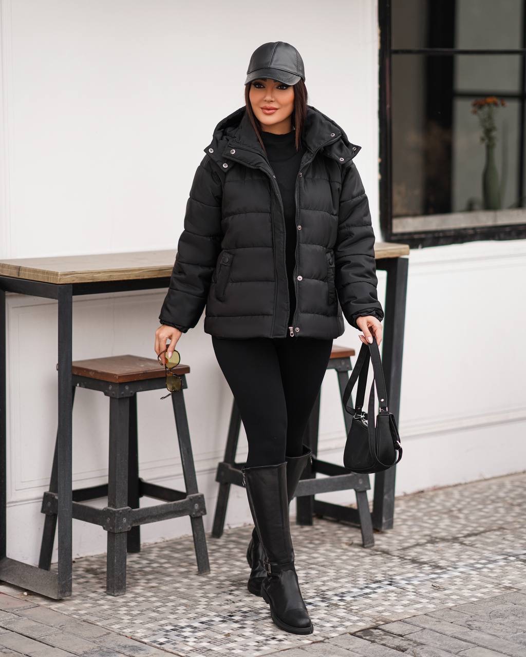 کاپشن کلاهدار کوتاه امبوردی مدل آیتن
