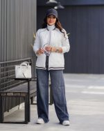 وست فوتر طوسی زنانه روی بلوز روشن با شلوار چرمی مشکی؛ استایلی شیک و مناسب فصل‌های خنک از مزون ملون