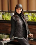 پالتو چرم مشکی زنانه مدل بنفشه با لگ چرمی و بوت مشکی، استایل شیک و اسپرت پاییزی