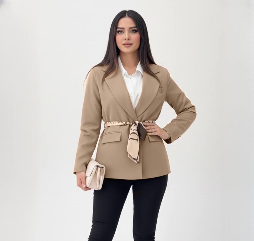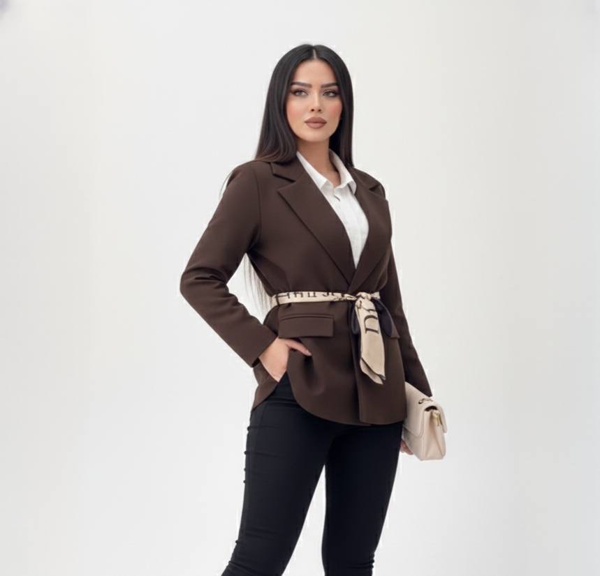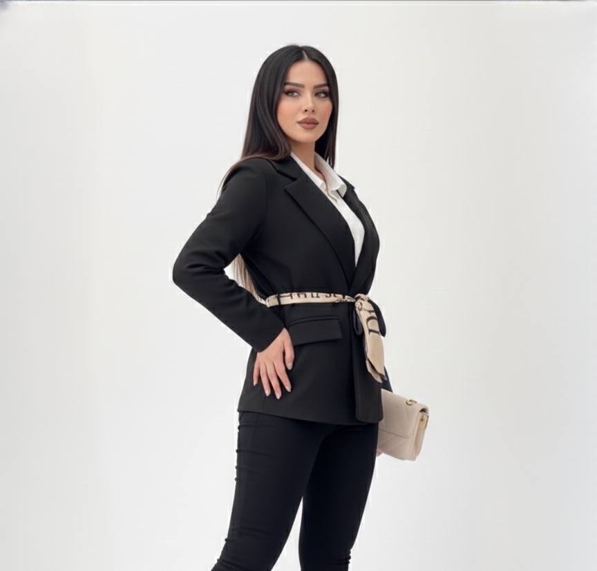 کت مازراتی زنانه با کمربند باندانا ساتن